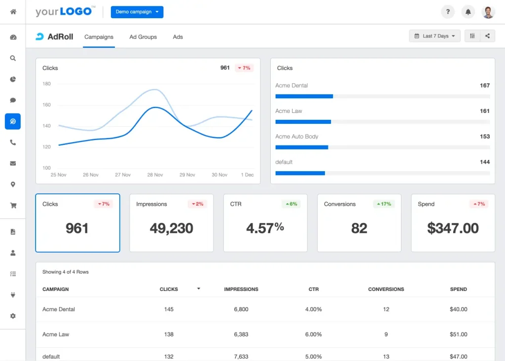 - Audiencias similares (Lookalike): AdRoll puede encontrar nuevos usuarios con características similares a tus mejores clientes o visitantes.