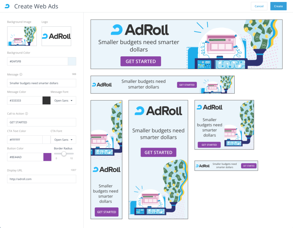 - Canales: ¿Dónde quieres mostrar tus anuncios (red de display de AdRoll, Facebook, Instagram, etc.)?