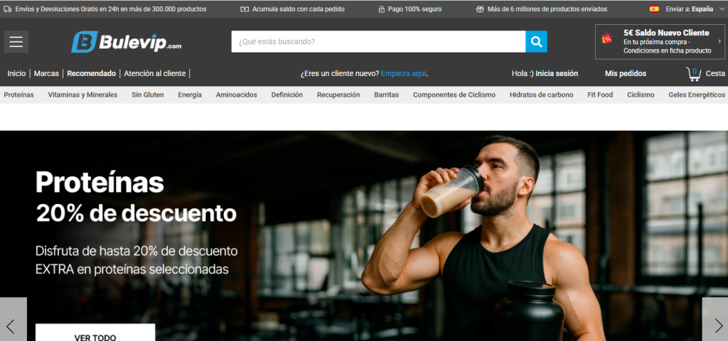Bulevip, que es un marketplace online español especializado en la venta de productos para la nutrición deportiva, suplementación, deporte y salud. Se ha posicionado como una plataforma líder en este sector en España, ofreciendo un amplio catálogo de productos de diversas marcas, tanto nacionales como internacionales.