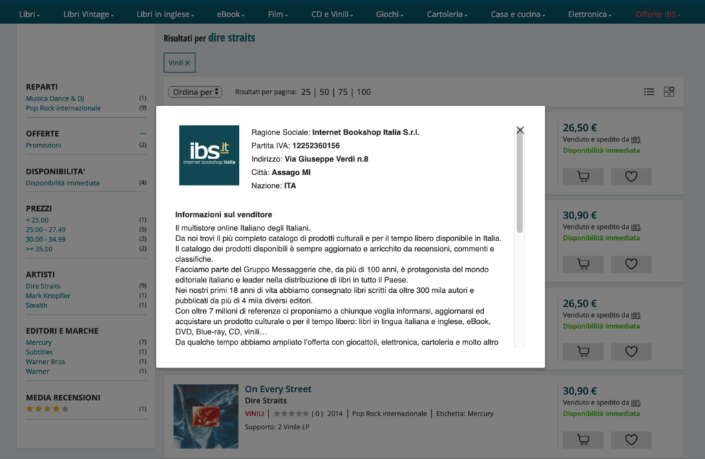 Para los comerciantes que operan en IBS.it, la plataforma lleva a cabo una revisión y actualización permanente de todo su catálogo de productos, esta labor es especialmente notable en el sector del libro, por la organización y la calidad de su oferta.