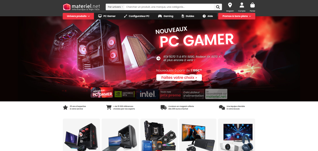 Materiel.Net es una tienda online francesa especializada en productos de informática, electrónica y tecnología de consumo. Fue fundada en el año 2000 y rápidamente se consolidó como una de las referencias en el comercio electrónico de tecnología en Francia, gracias a su enfoque en la calidad del servicio y la atención al cliente.