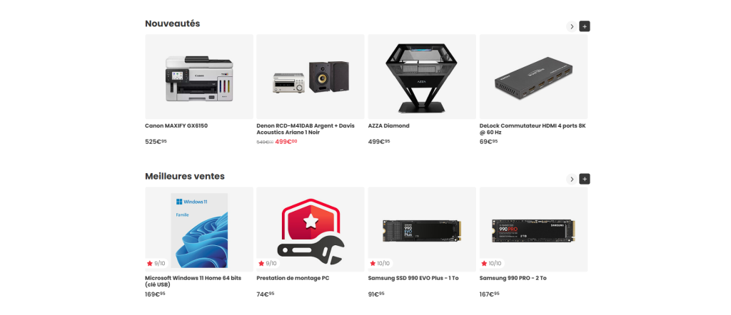 Materiel.net es una tienda online francesa especializada en tecnología y productos informáticos. Ofrece un amplio catálogo que incluye componentes de PC, ordenadores, periféricos, productos de electrónica de consumo y servicios como el ensamblaje de PCs personalizados. La plataforma funciona tanto como un minorista directo como un marketplace donde los vendedores pueden ofrecer sus productos. Los clientes pueden comprar a través de su sitio web, que también ofrece atención al cliente, soporte técnico y puntos de venta físicos en varias ciudades de Francia. Al estar asociada con LDLC, Materiel.net se beneficia de una mayor capacidad logística y una fuerte presencia en el mercado europeo.