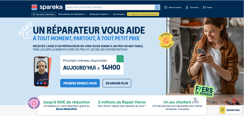 SPAREKA es una empresa francesa, especializada en la venta de piezas de repuesto para electrodomésticos y en ofrecer herramientas educativas para fomentar la autorreparación de dispositivos del hogar. La misión de SPAREKA es combatir la obsolescencia programada y promover un consumo más sostenible