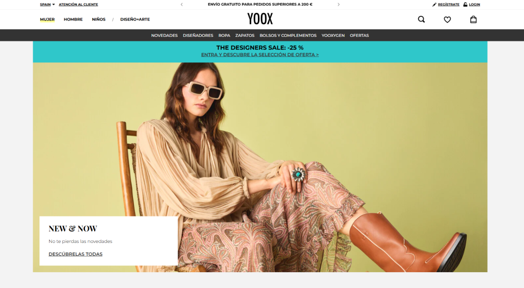 Yoox es un reconocido minorista en línea multimarca que se especializa en la venta de moda, diseño y arte, ofreciendo una extensa y variada selección de ropa, calzado, accesorios y artículos para el hogar provenientes de una multitud de diseñadores y marcas a nivel mundial.